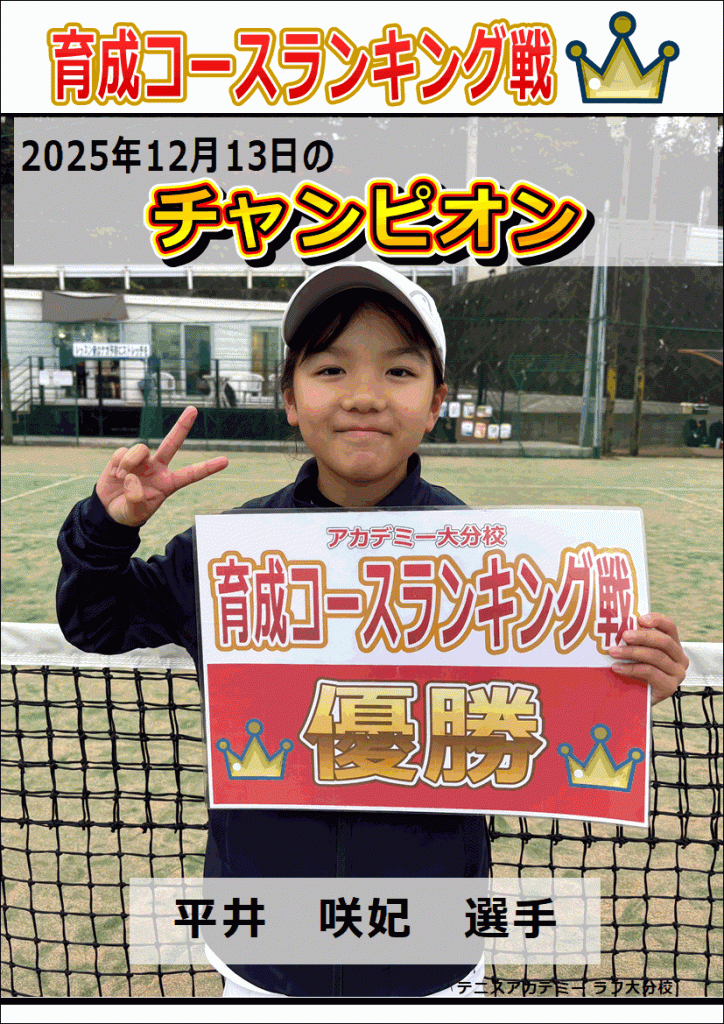 最近はレッスン中のゲーム練習で、中学生にも勝っちゃう咲妃ちゃんが念願の初優勝で2025年最後のチャンピオンとなりました!