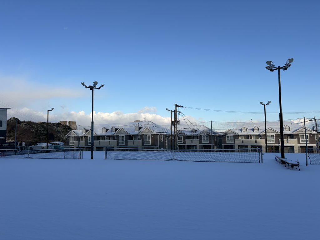 お昼を過ぎるとコートの雪は溶け、夕方のレッスンはできそうです。