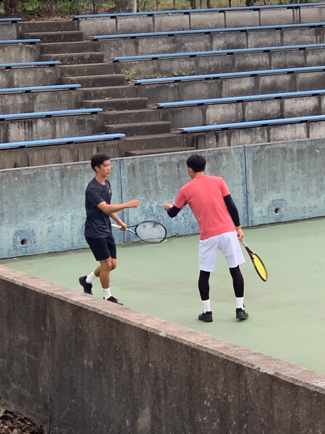 ダブルスは相手選手の力強いストロークに押されそうになりましたが、持ち前の2人ともネットに詰めるボレーでポイントを重ね勝利に繋げることが出来ました!!