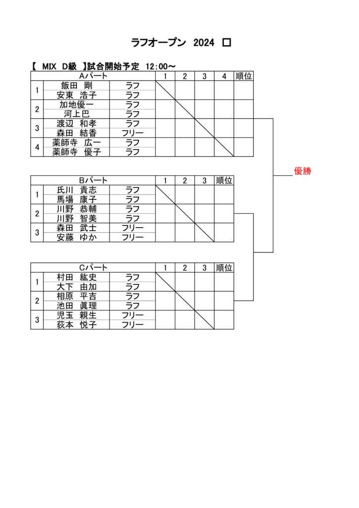 6/15(土)開催の「ラフオープン2024」仮ドロー表を掲載いたします。