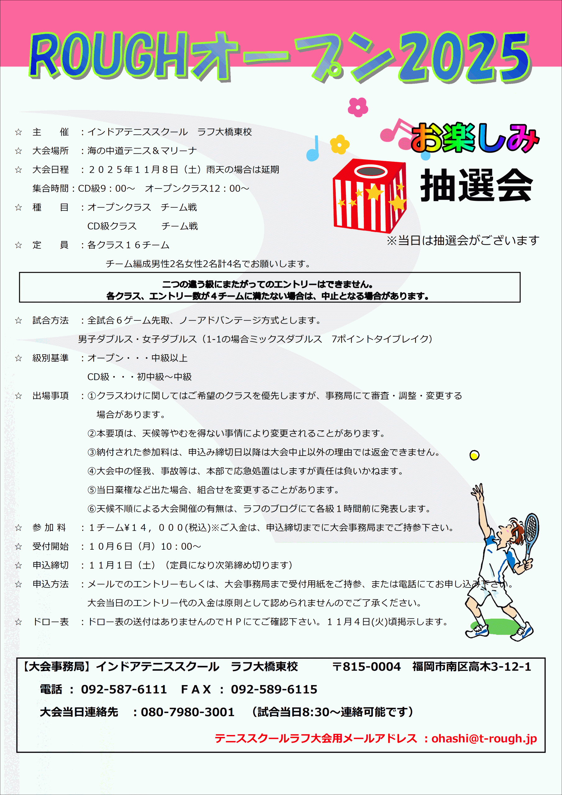 内容:ラフ唯一のスクール関係なしのオープン大会