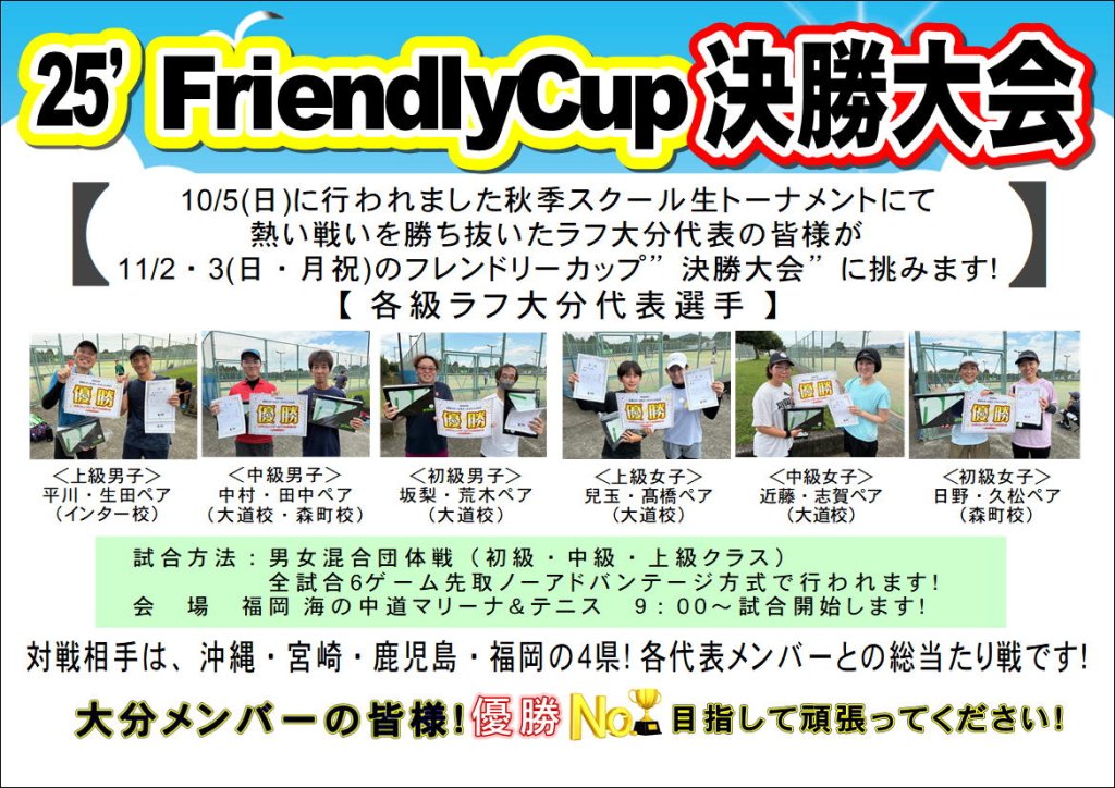 11/2・3(日・月祝)福岡 海の中道マリーナ&テニスにて開催される「フレンドリーカップ”決勝大会”」に挑みます!