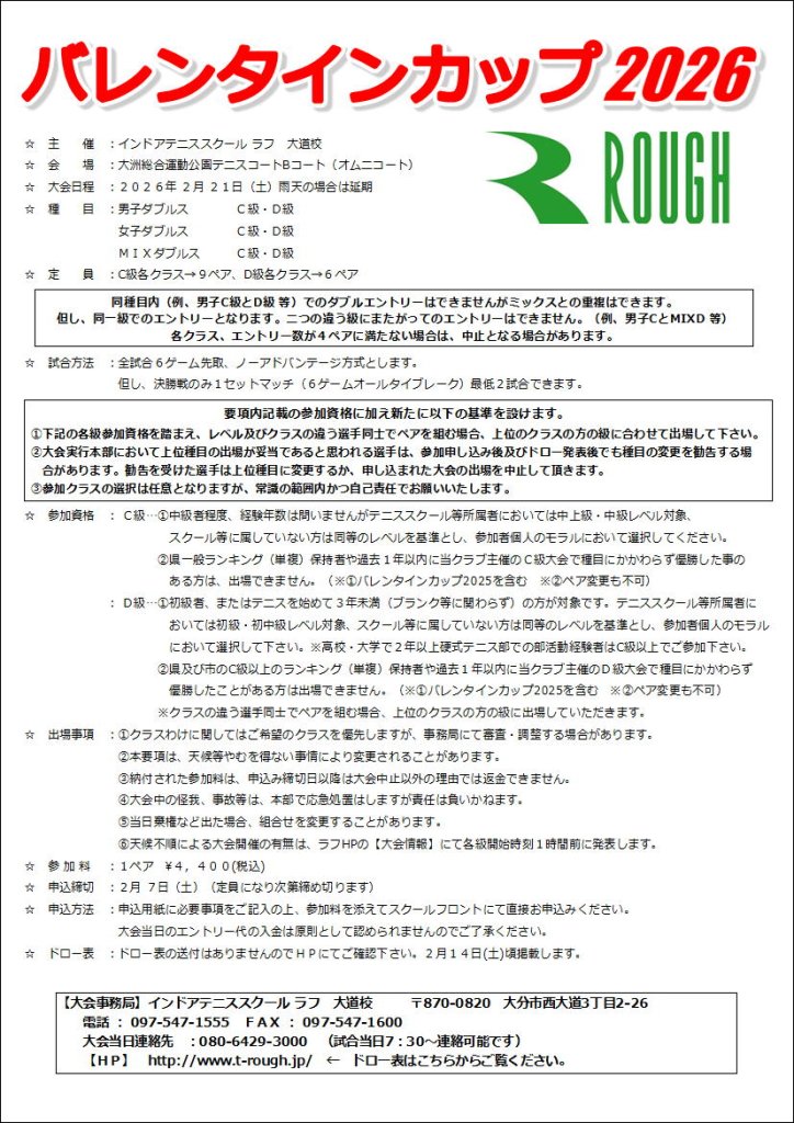 バレンタインカップ2026の開催が決定致しました!!