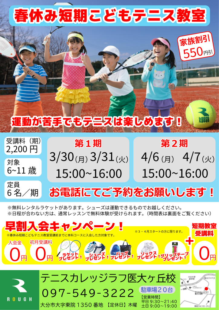 春休み短期こどもテニス教室3/30.31(月・火) 4/6.7(月・火)15:00~開催!!