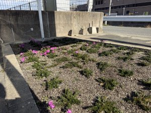 看板後ろの方が芝桜が咲いてきました!