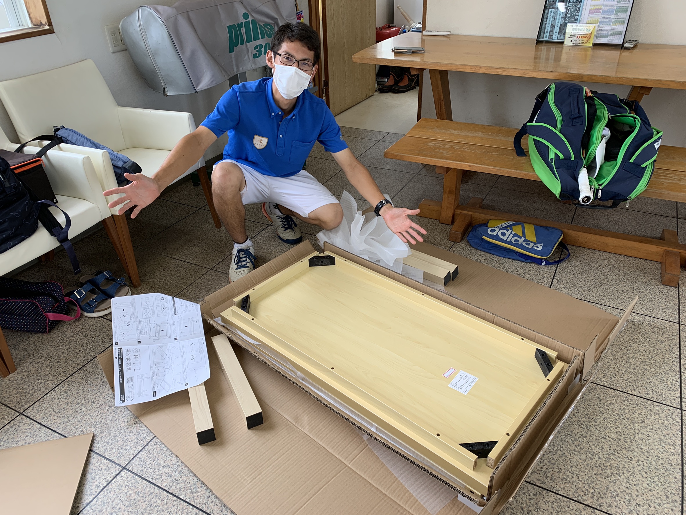 先日、梶谷コーチがおしゃれなテーブルを持ってきてくれました!!