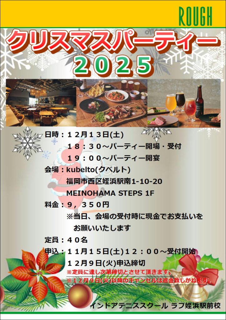 明日13日はいよいよ姪浜駅前校のクリスマスパーティーです!!
