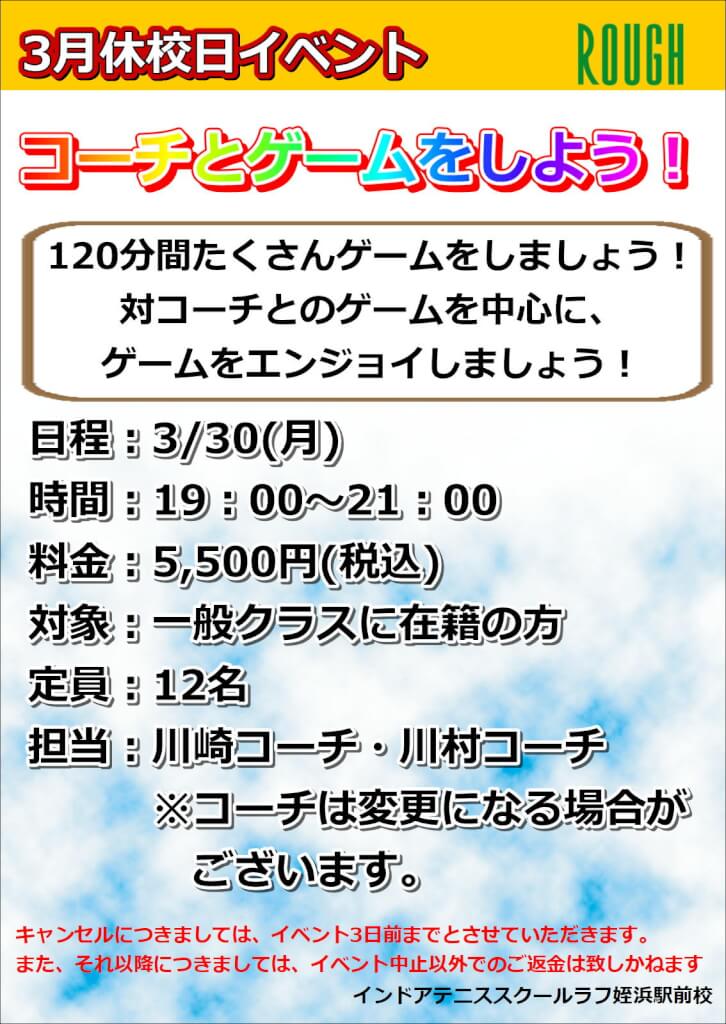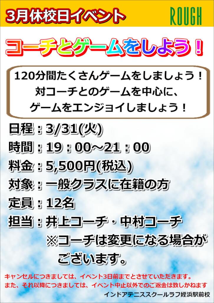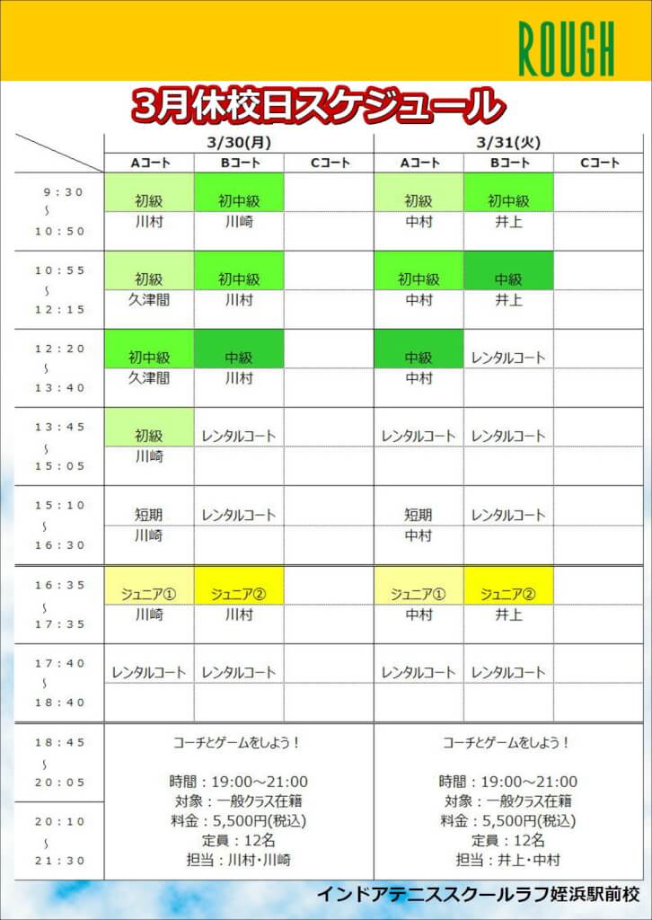 3月30日(月)と31日(火)は休校日となり、