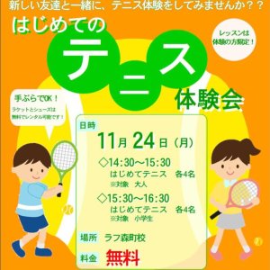 【スクール情報】10/25(土) はじめてのテニス体験会開催!