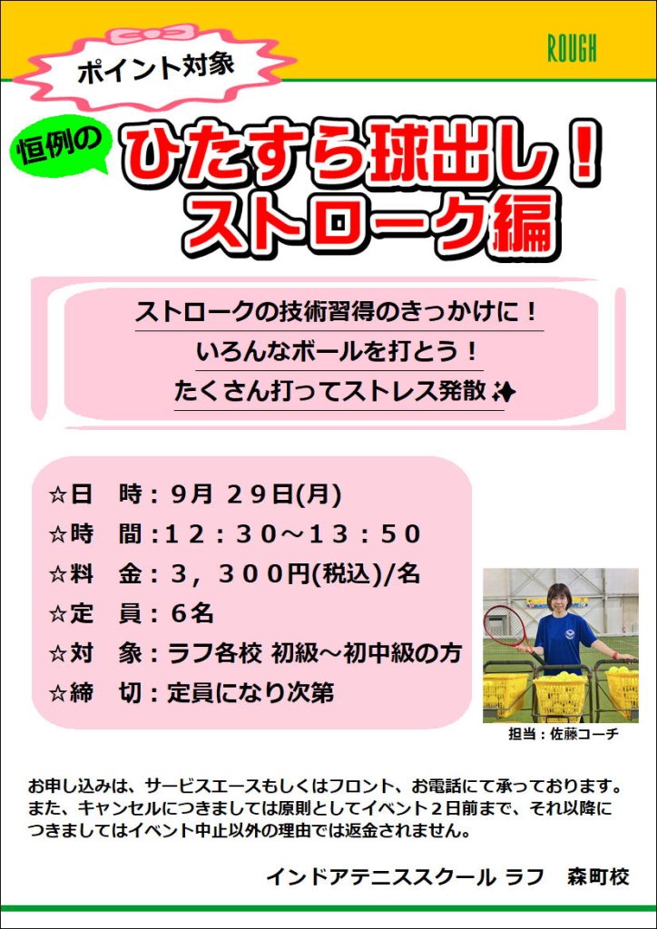 そして、9月最後のイベントレッスンは毎月恒例の「ひたすら球出しストローク!」です。