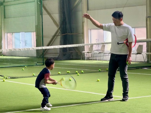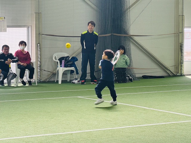 初めてテニスをする4歳のお子さまも、上手にラケットにボールを当てれるようになりました!!すごい✨