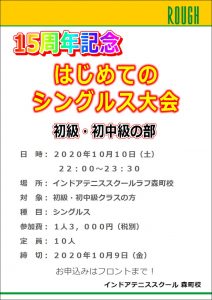 なんと、はじめてのシングルス大会、満員御礼となりました!!