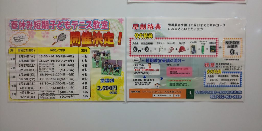 キッズやジュニアのクラスは春休み短期テニス教室もありますよ🎵