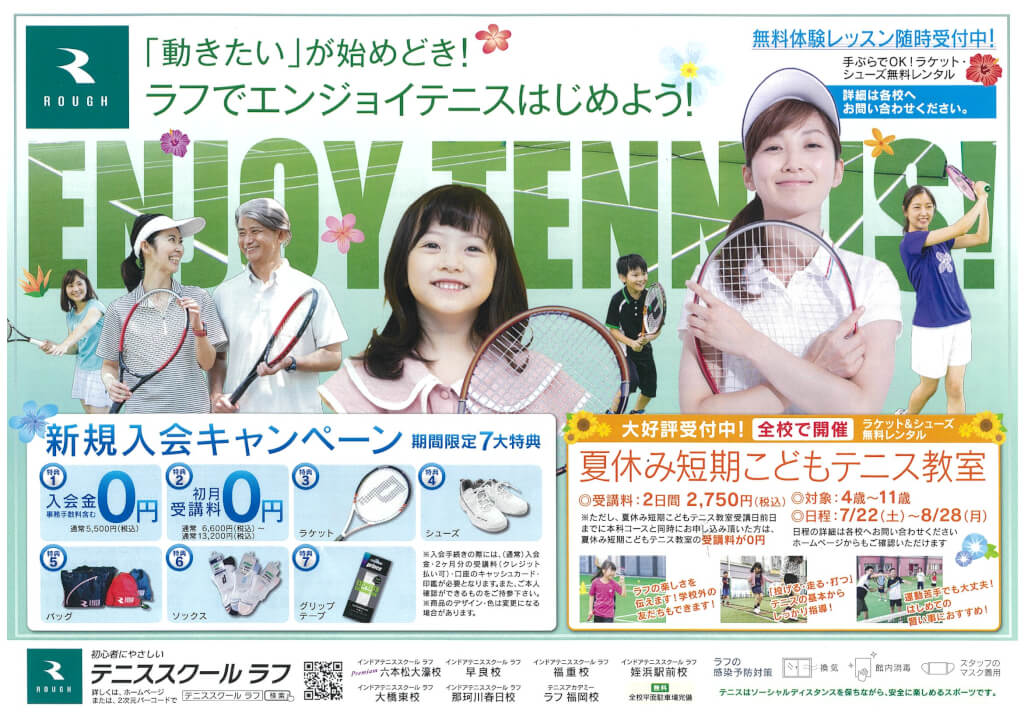 ラフでは、そんなお子様に向け【夏休み短期こどもテニス教室】を開催いたします。