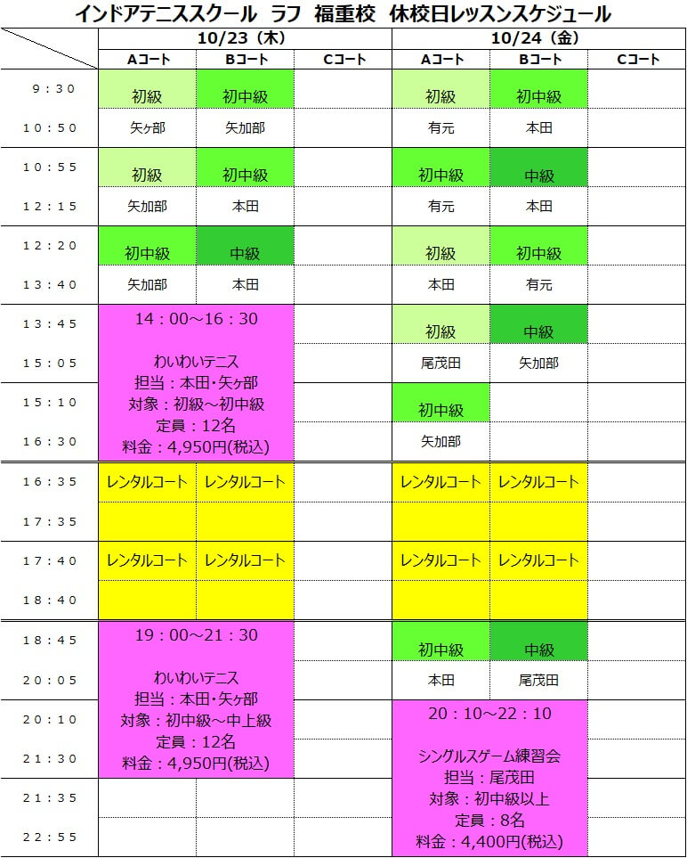10月23日(木)・24日(金)は休校日の為、通常レッスンはお休みとなります。