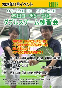 30日(日)19:30~21:30 初中級~中上級 ダブルス練習会