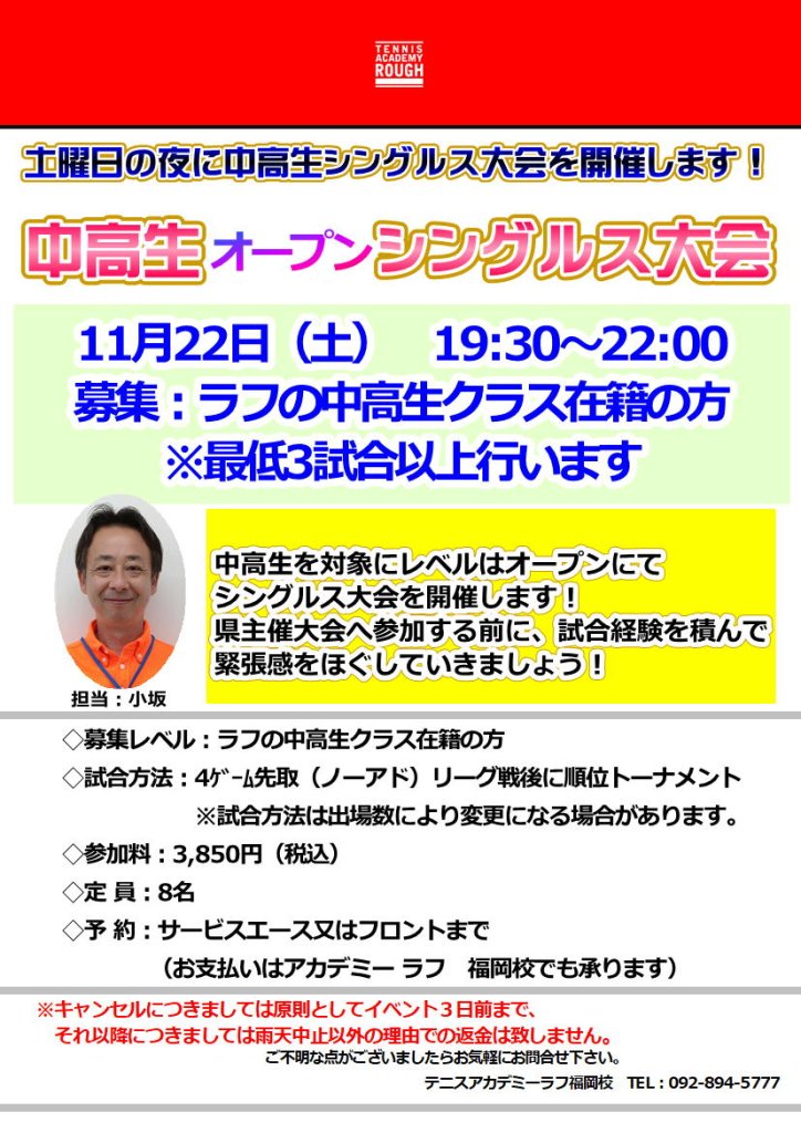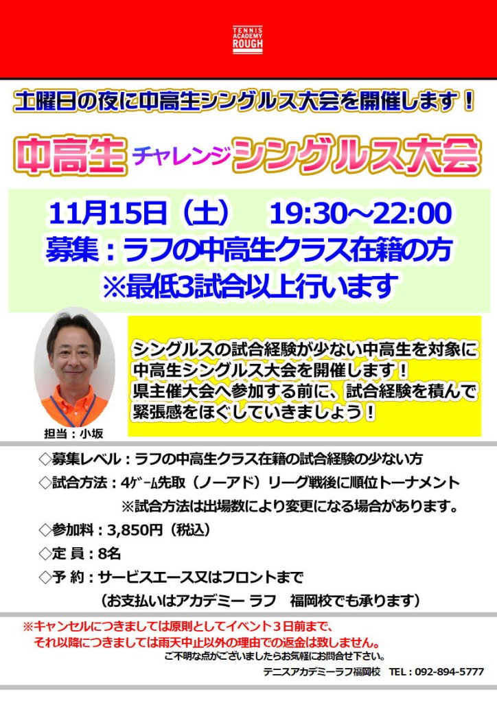 試合が初めて、又は試合経験が少ない中学生・高校生が対象のシングルス大会!