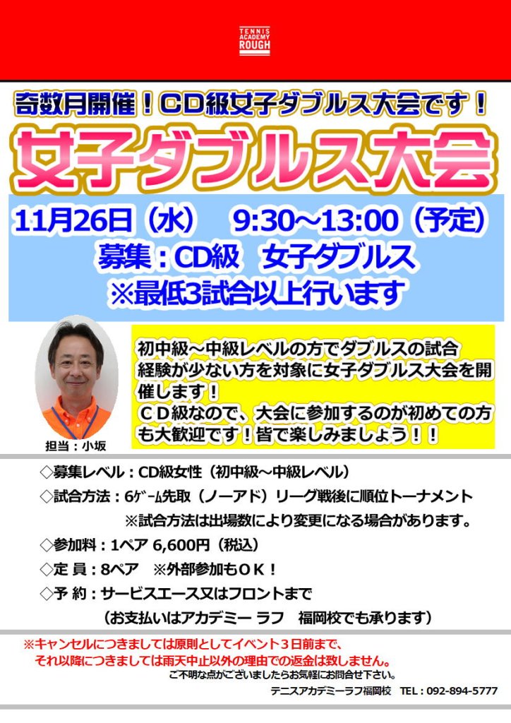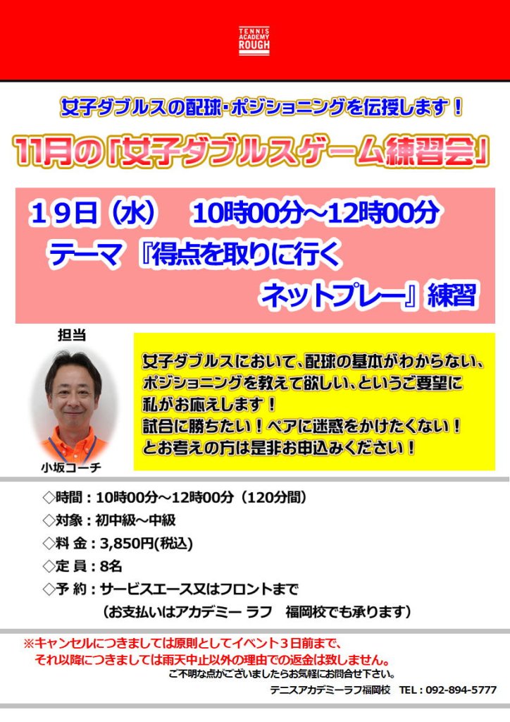 いつもテニスアカデミー ラフ 福岡校をご愛好いただき誠にありがとうございます。