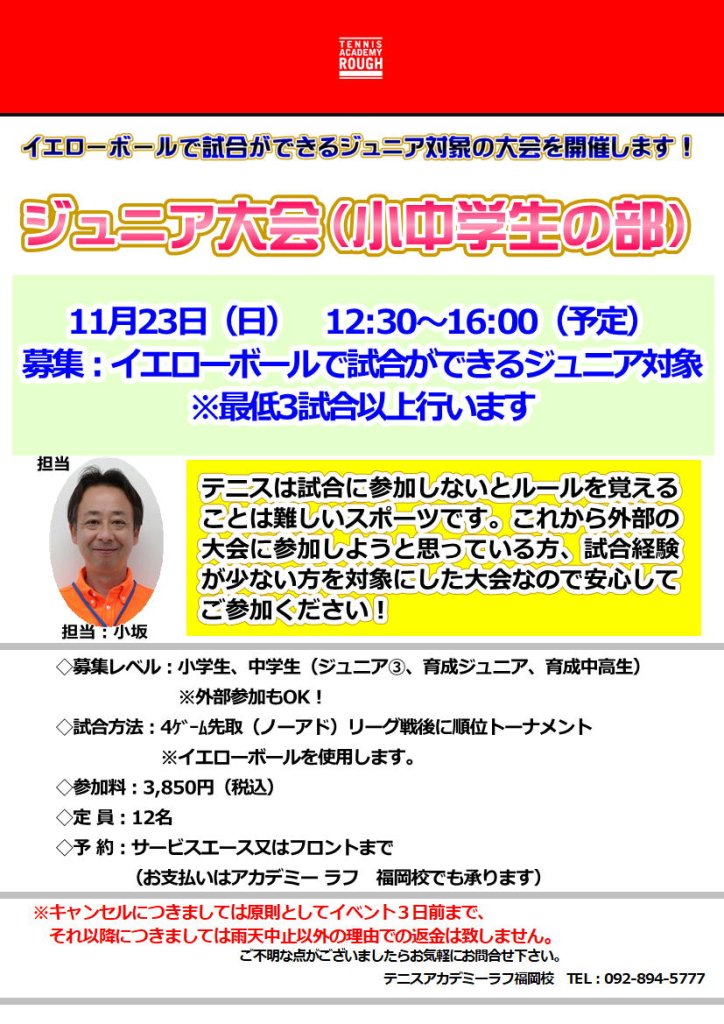 いつもテニスアカデミー ラフ 福岡校をご愛好いただき誠にありがとうございます。