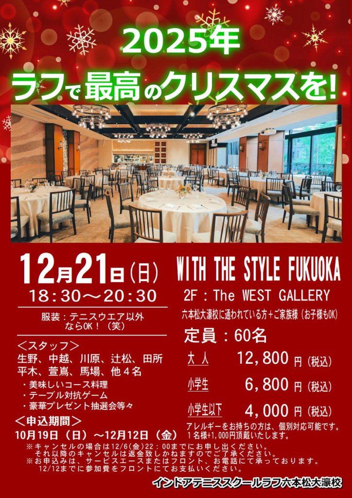 【イベント情報】12/21開催|ラフ六本松大濠校 クリスマスパーティー2025@WITH THE STYLE FUKUOKA✨