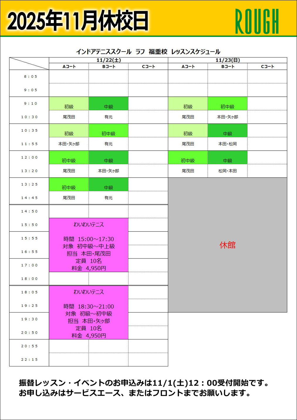 いつもインドアテニススクールラフ福重校をご愛顧いただき、誠にありがとうございます。