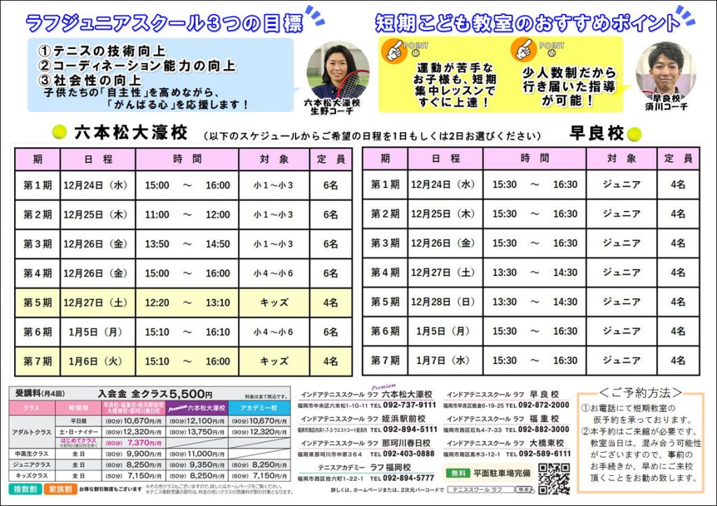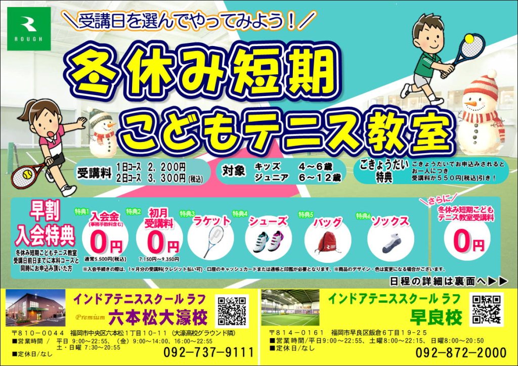 今年も、お子様の冬休みに合わせて、『冬休み短期こどもテニス教室』を