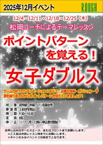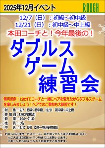 7日(日)19:30~21:30 初級~初中級 ダブルス練習会