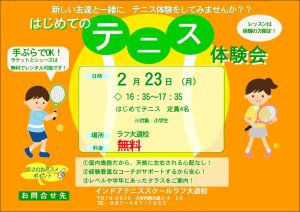 2月23日(月) 🔰小学生対象のはじめてのテニス体験会‼
