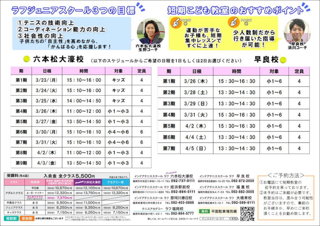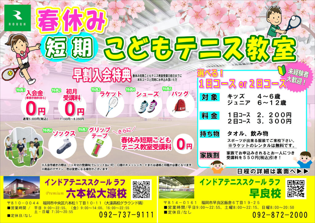 ※お電話の際は「春休み短期こどもテニス教室の申込み」とお伝えください