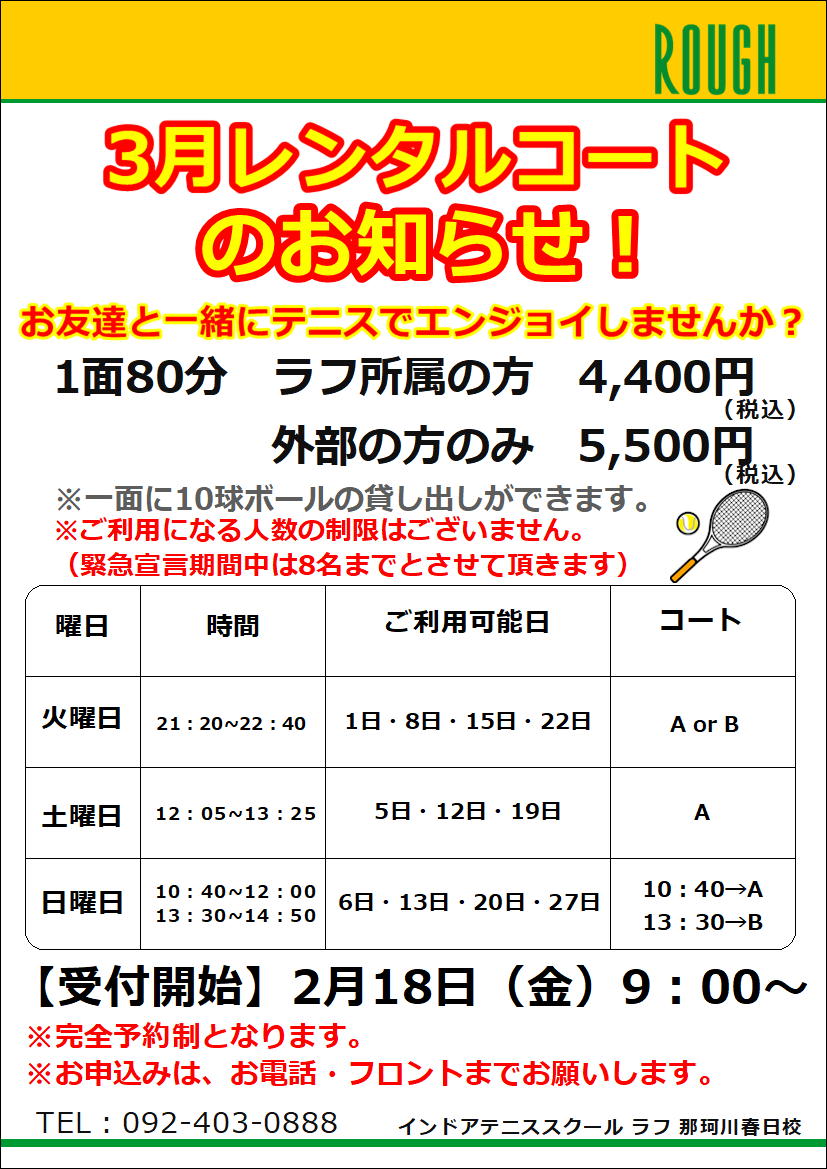 日頃からインドアテニススクールラフをご愛顧いただき、誠にありがとうございます。