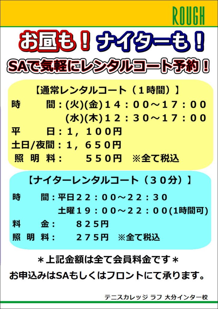 大分インター校のレンタルコートがSA(サービスエース予約システム)から、予約できるようになりました!