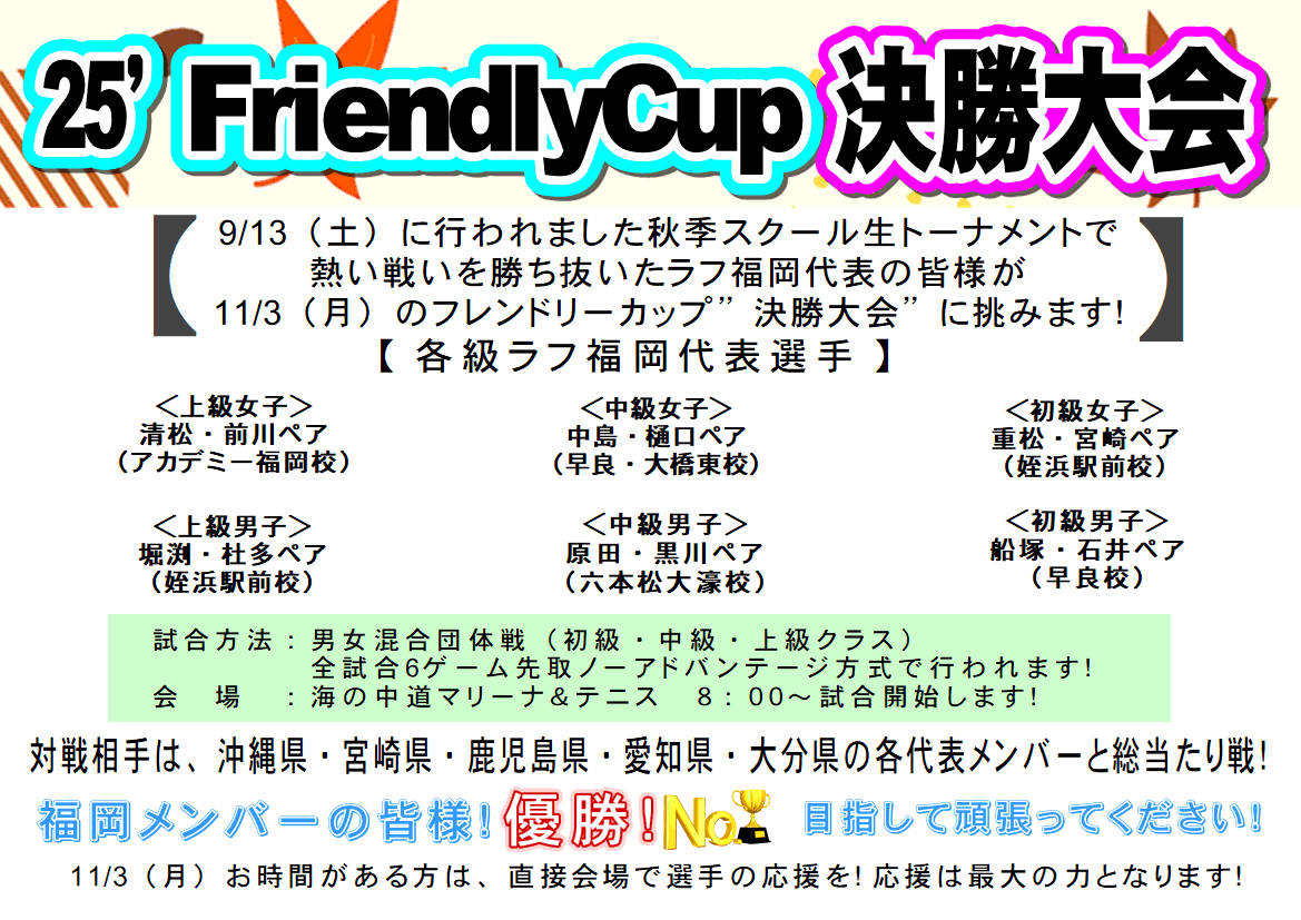 そして、いよいよ11/3(月・祝)にフレンドリーカップ🎾が開催されます。