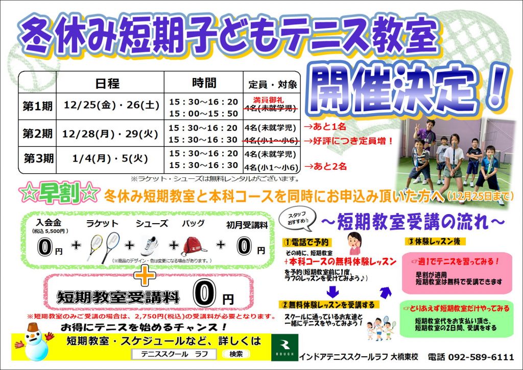 冬休みに大橋東校でテニス始めましょう\(^o^)/