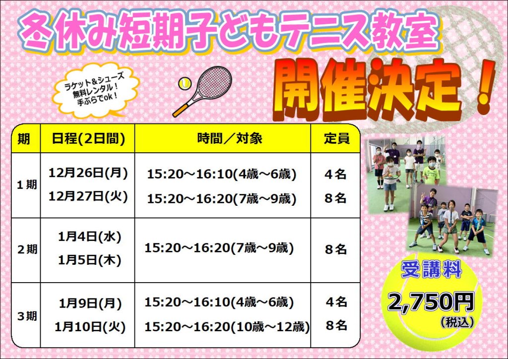 冬休みの短期テニス教室まだまだ募集しています!(^^)!