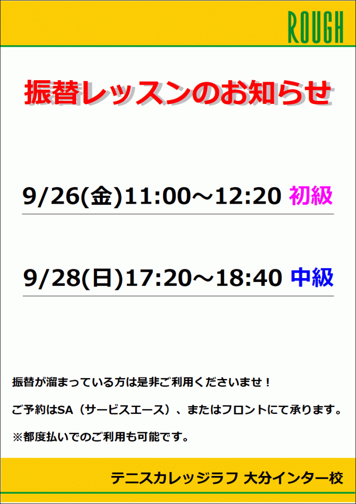 是非、この機会に振替レッスンに来られてください!