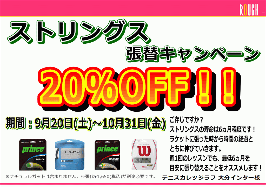 ただいま、大分インター校ではストリング張替えキャンペーンを実施中です!