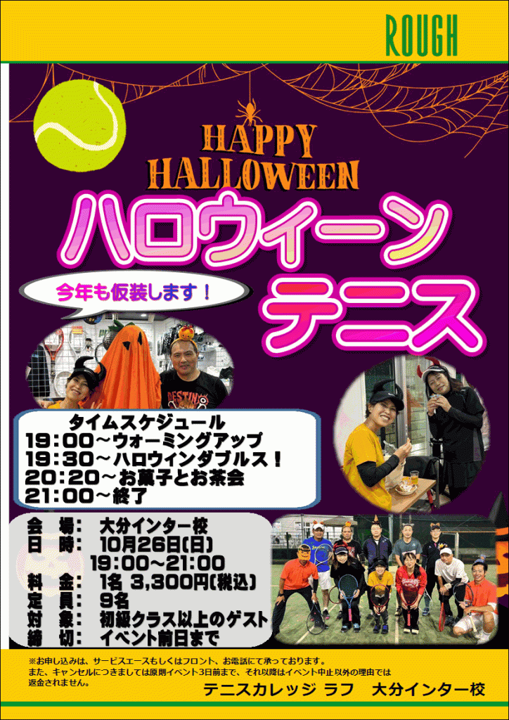 大分インター校では10月26日(日)にハロウィーンテニスを開催いたします!!