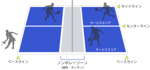 そしてそんな道具を使い、テニスよりはるかに小さいバドミントンコートと同じ広さのコートでプレイします!