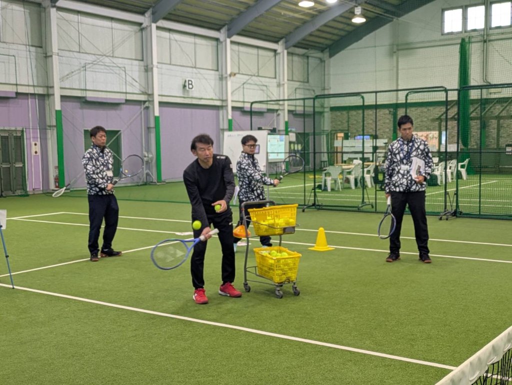 本日、大道校にて日本テニス協会ナショナルコーチである中山芳徳コーチをお招きし大分地区合同社員研修が行われました。