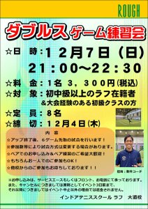 今年は年末12月28日まで通常営業なので、ダブルスゲーム練習会納めとなります!
