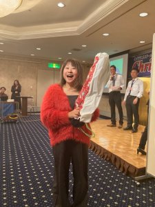 そして、テーブル対抗クイズで盛り上がった後は、私達が夜な夜な打ち合わせと練習を重ねてきた余興のお時間です!
