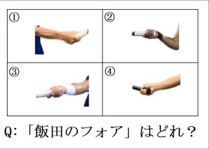 この問題、大道校の皆さんはどれが飯田コーチのフォアハンドの腕か一目瞭然ですね!