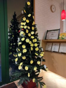 クリスマスに欲しいものや、コーチへのメッセージなどを書いてツリーに飾っていきます!