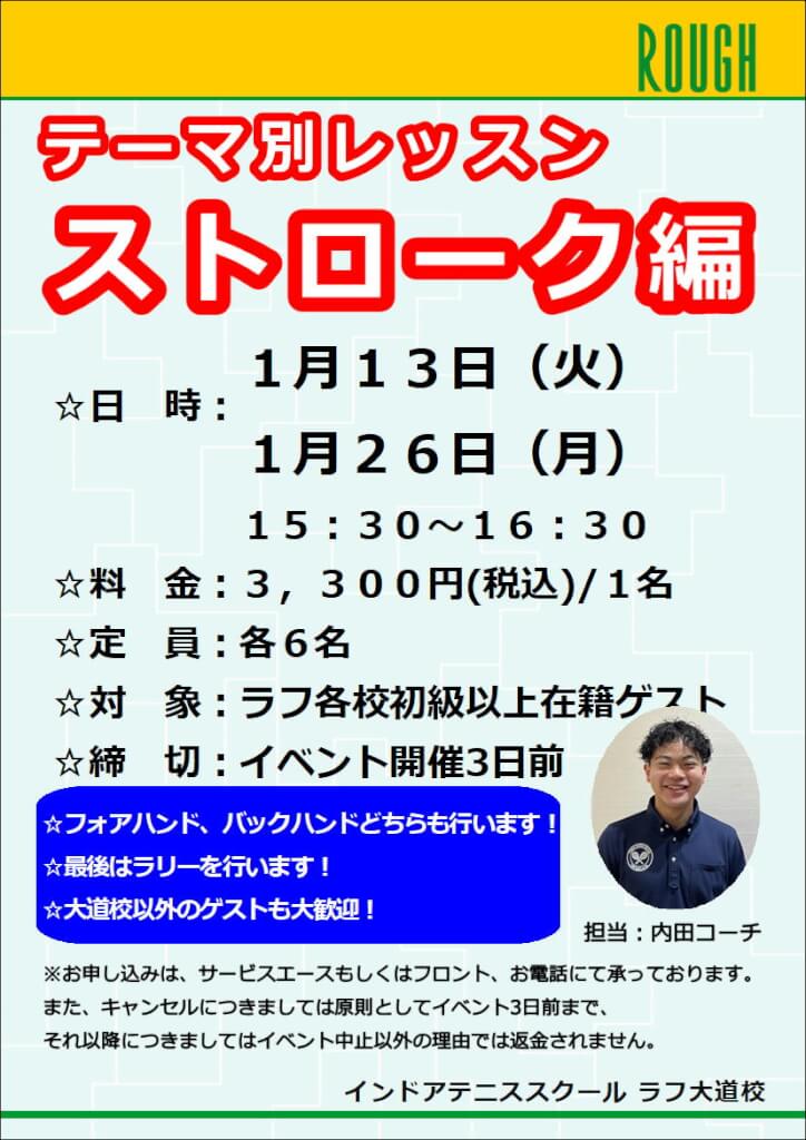 インドアテニススクールラフ大道校の内田です
