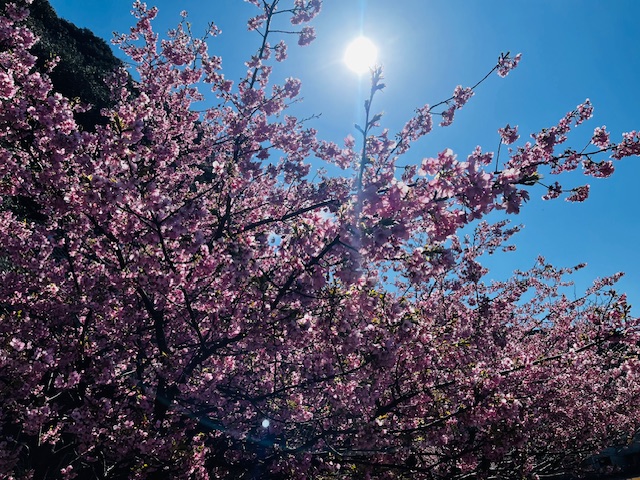 こちら、先日のブログでも咲き始めの写真をあげていた河津桜が、先週は満開でとても綺麗でした。