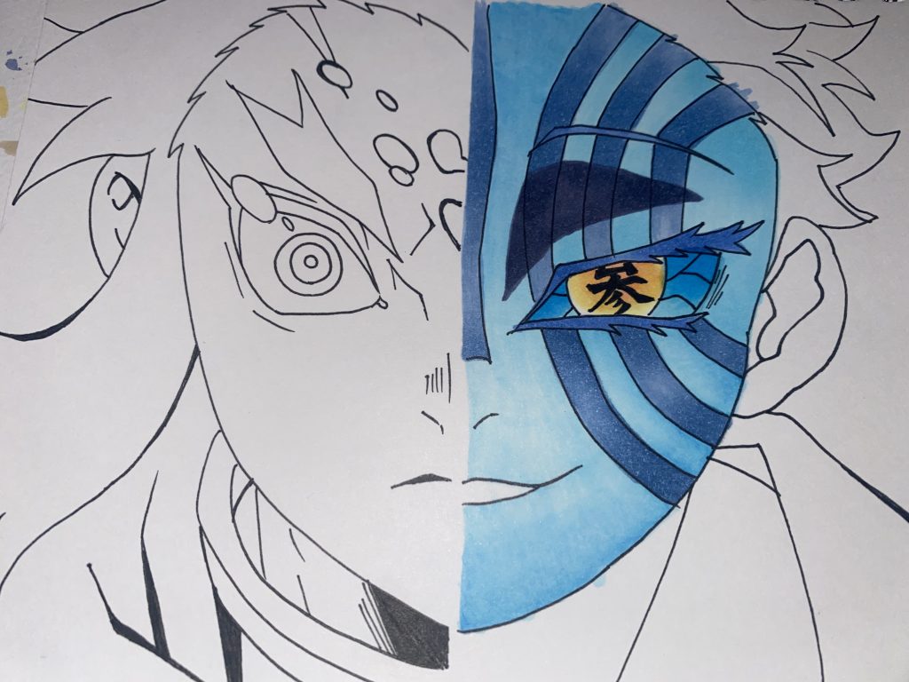前回の煉獄&猗窩座に色を付けていっている段階です!