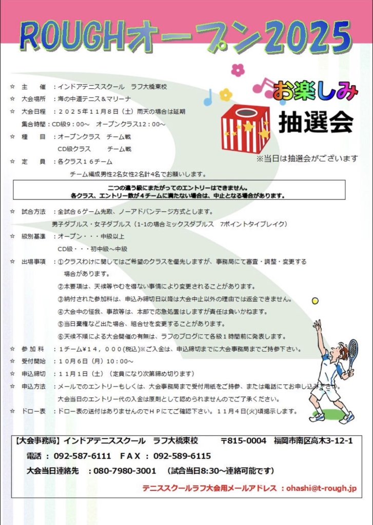 場所は海の中道テニスコートで行いますので仲良しグループで是非参加してみてください!